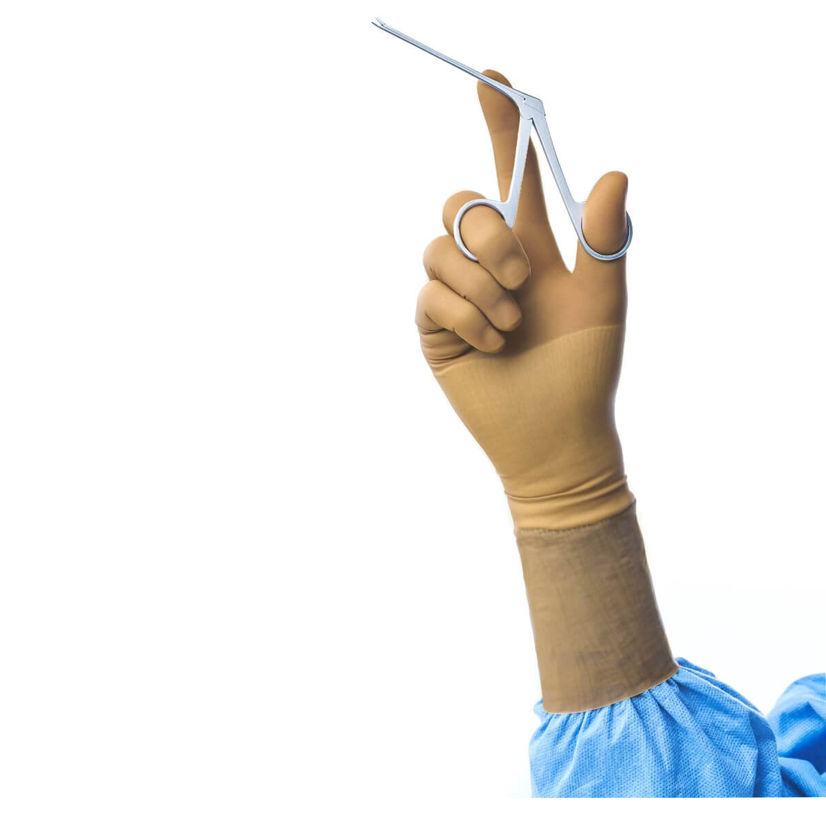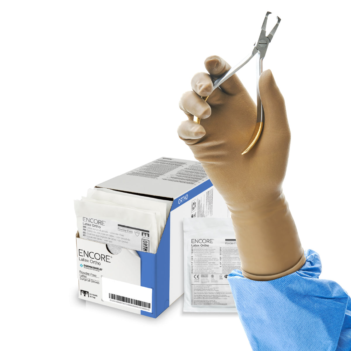 El guante quirúrgico Encoré Látex Ortho de Ansell está especialmente diseñado para su uso durante procedimientos de alto riesgo en ortopedia, cirugía traumatológica y cardiología. Para ello, el guante quirúrgico no sólo es un 50% más grueso que los guantes quirúrgicos de látex estándar sin polvo de Ansell, sino que también cuenta con un texturizado extrafuerte en la palma y las puntas de los dedos. Esto también garantiza un agarre seguro en condiciones húmedas. Gracias al recubrimiento interior de polímero, el Encoré Látex Ortho puede ponerse tanto con las manos secas como con las húmedas. Esto facilita el cambio de guantes durante la cirugía.