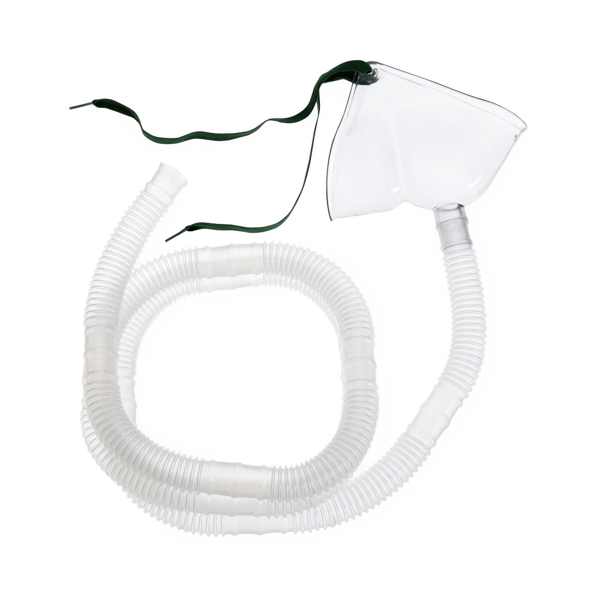 Mascarilla tipo tienda con tubo corrugado ideal para terapia en aerosol de alta humedad.